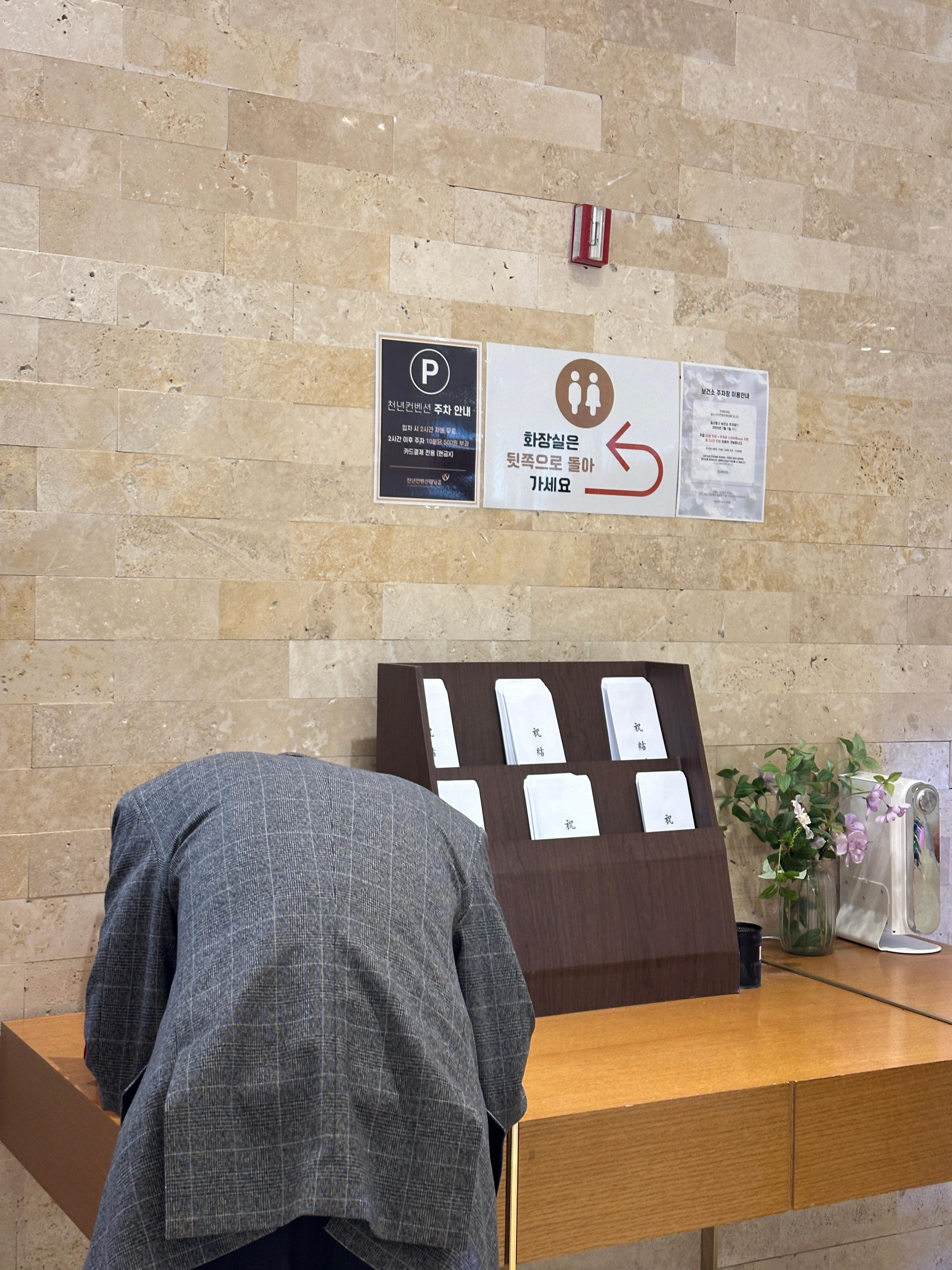 엘레베이터 바로 왼편에는 축의 봉투가 구비되어있고,