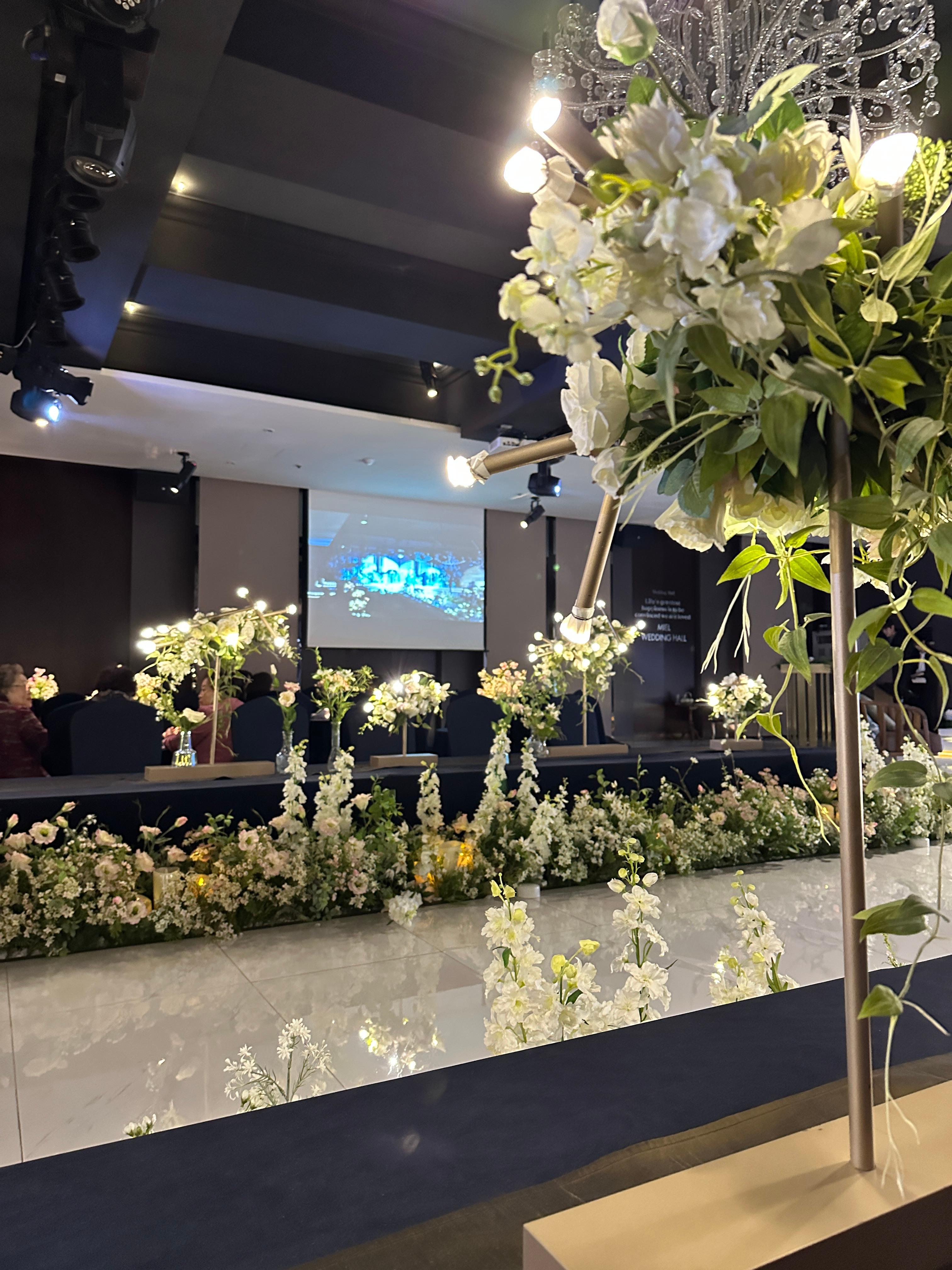 홀은 어둡지만 꽃장식이 화사해서 대비감이 살아나고 더 돋보이더라고요.